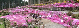 西村大師堂の枝垂れ桜と芝桜 (愛媛県久万高原町)